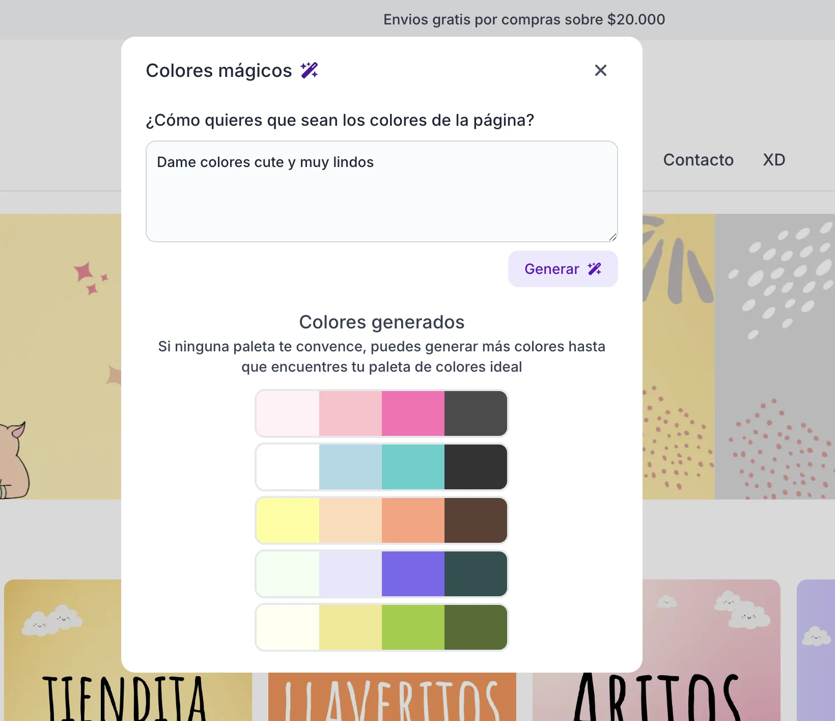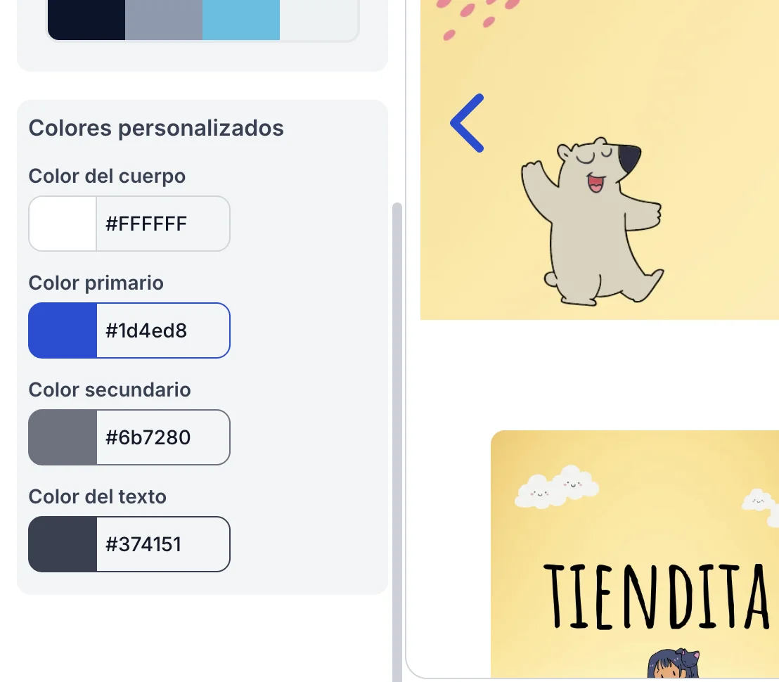 Ejemplo: "Tienda de ropa infantil, colores pasteles, suave y alegre".