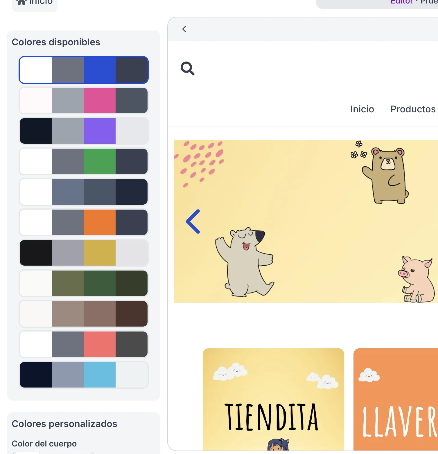 El sistema te mostrará varias propuestas de paletas. Haz clic sobre ellas para probarlas en tiempo real en tu página.