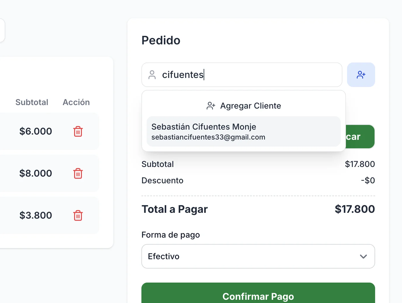 Por defecto, las ventas en el POS son anónimas. Sin embargo, asignarlas a un cliente te permite llevar un historial de sus compras o emitir una Factura Electrónica.