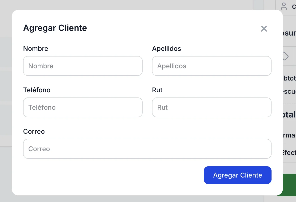 Presiona "Agregar Cliente". El sistema lo guardará y lo asignará automáticamente a la venta actual.