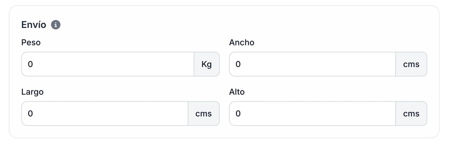 Para que el sistema calcule correctamente el costo de envío al cliente, debes ingresar las dimensiones físicas del producto embalado.