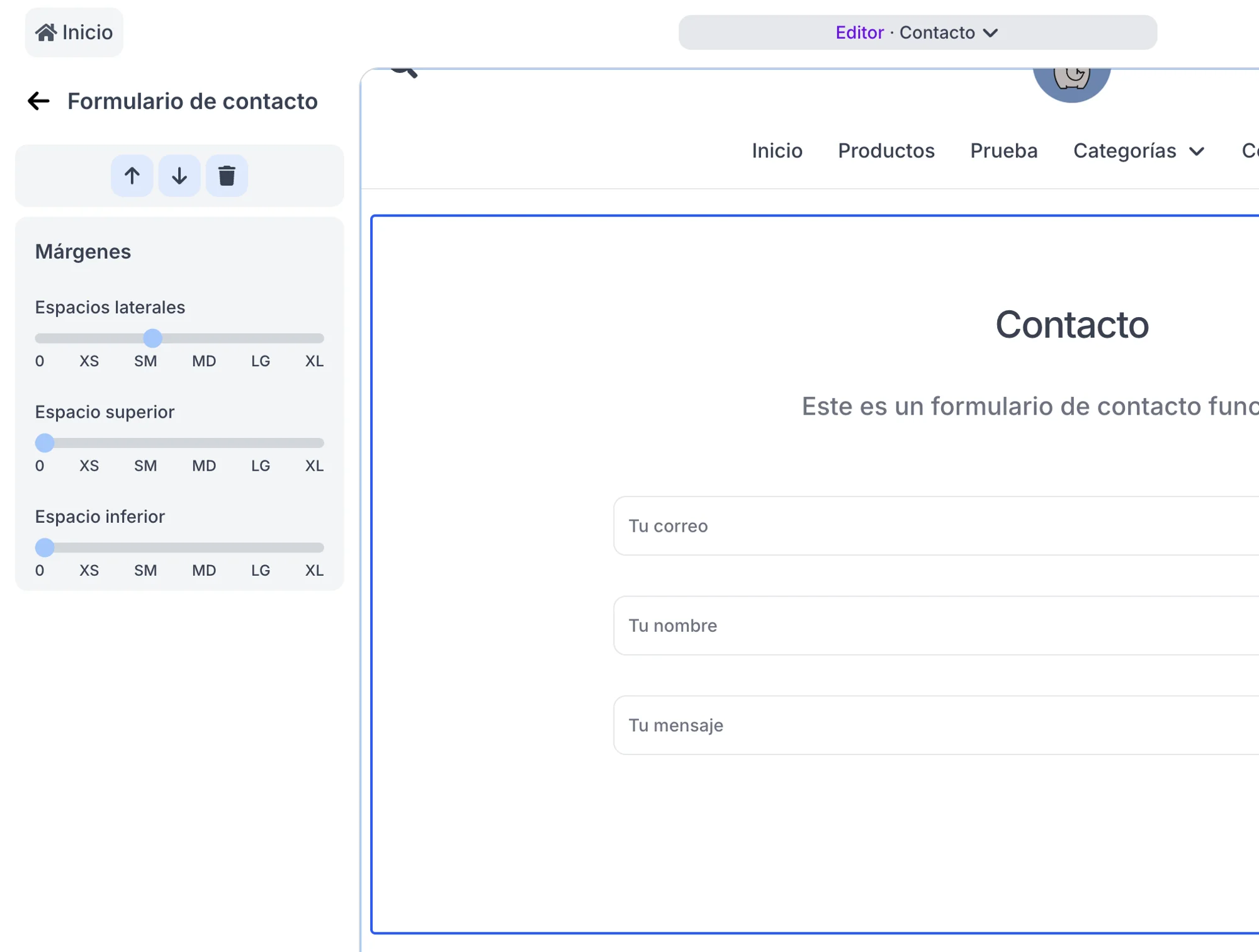 Se insertará una sección limpia con campos para Correo, Nombre y Mensaje.