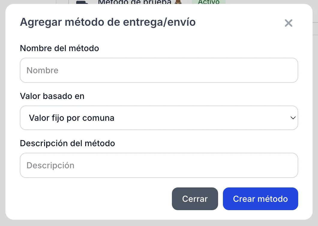 Nombre: Ej: "Envío Express", "Starken por Pagar", "Despacho a Domicilio".