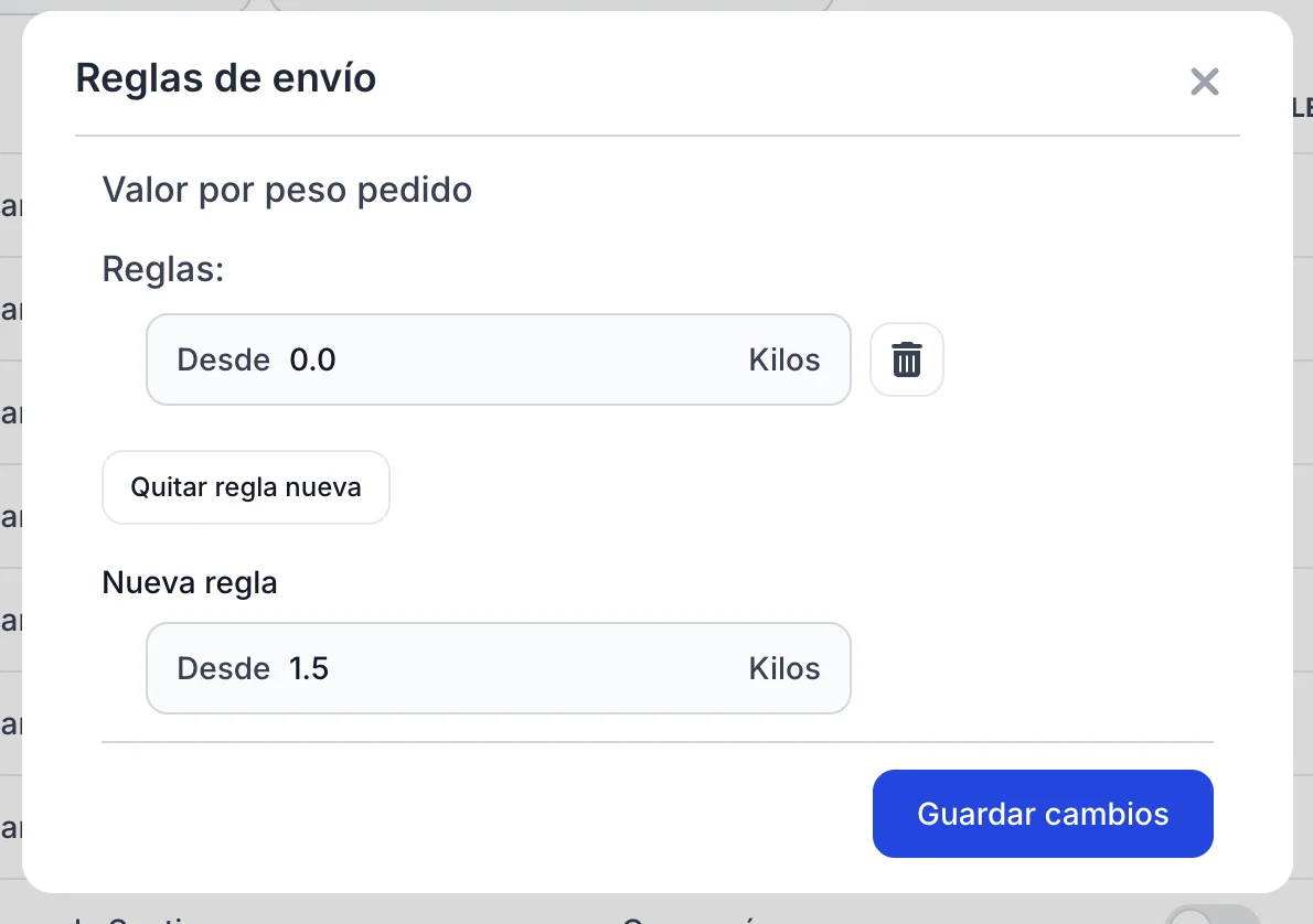 Por peso: Ideal si vendes productos muy pesados (requiere que tus productos tengan el peso configurado).
