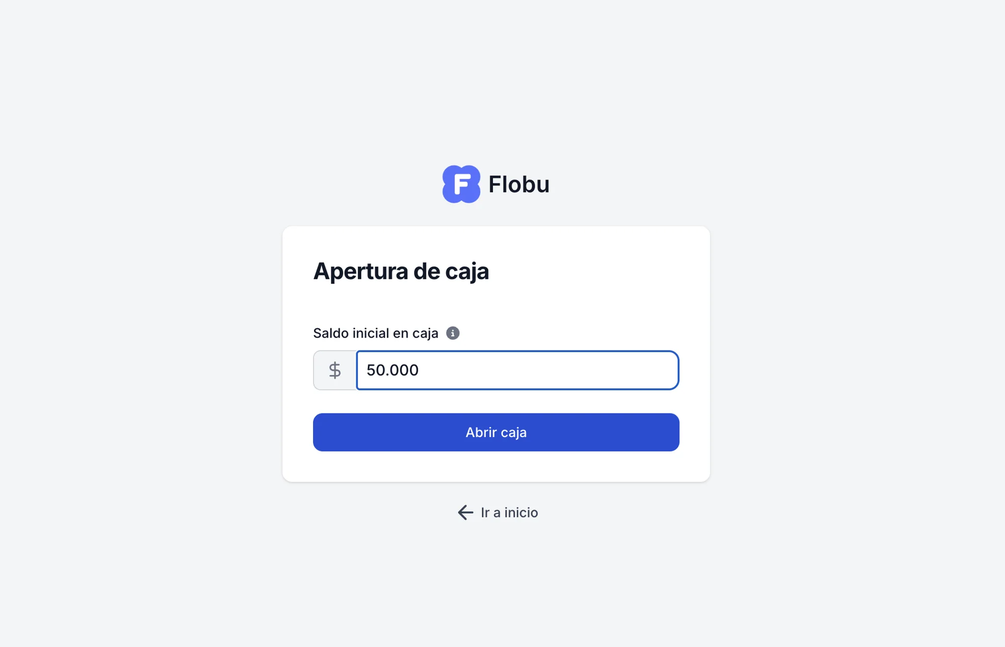 En el campo "Saldo inicial en caja", ingresa la cantidad de dinero en efectivo con la que empiezas (sencillo/cambio).