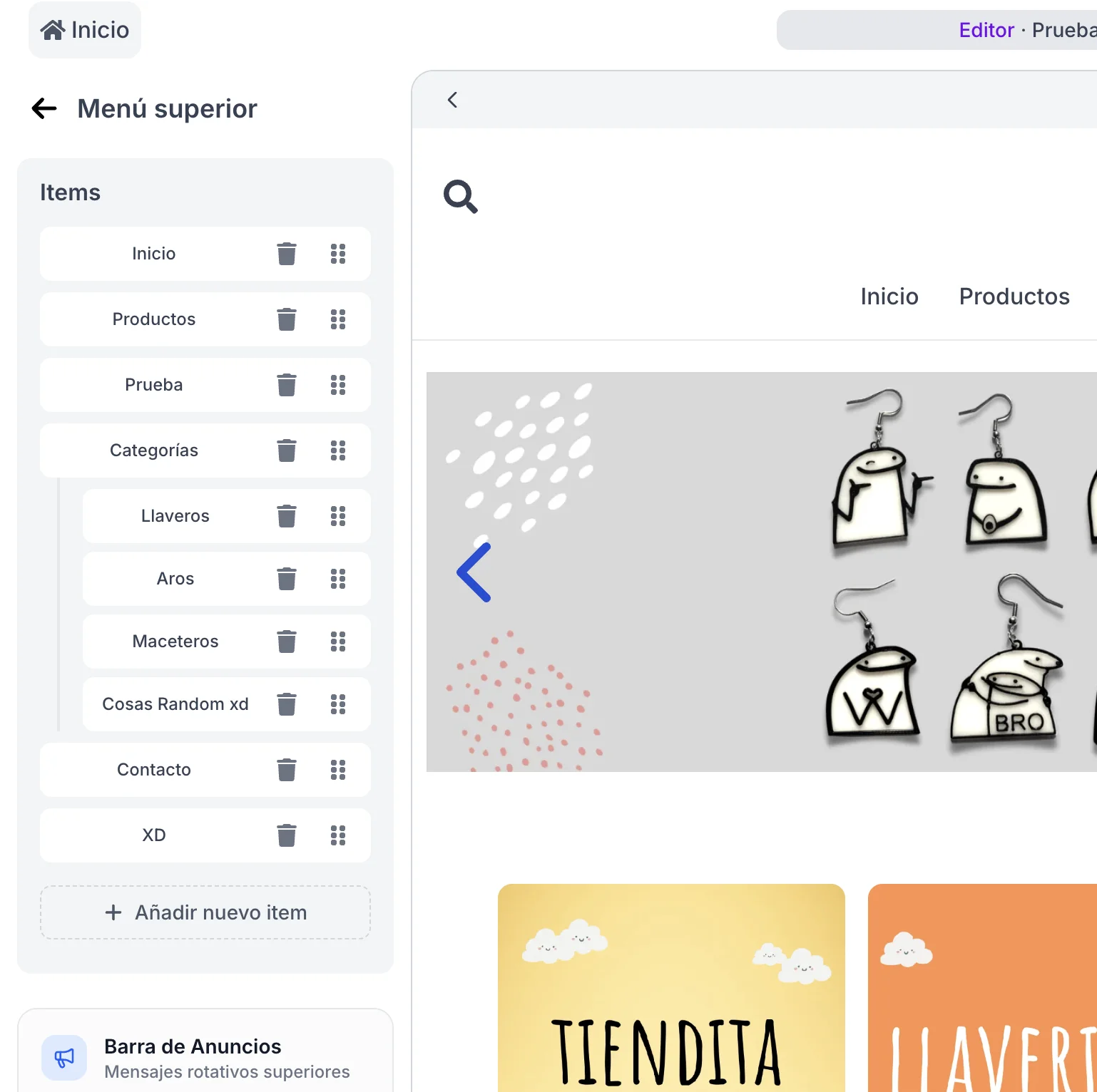 2. Agregar Elementos al Menú Verás la lista de enlaces actuales (Ej: Inicio, Catálogo).