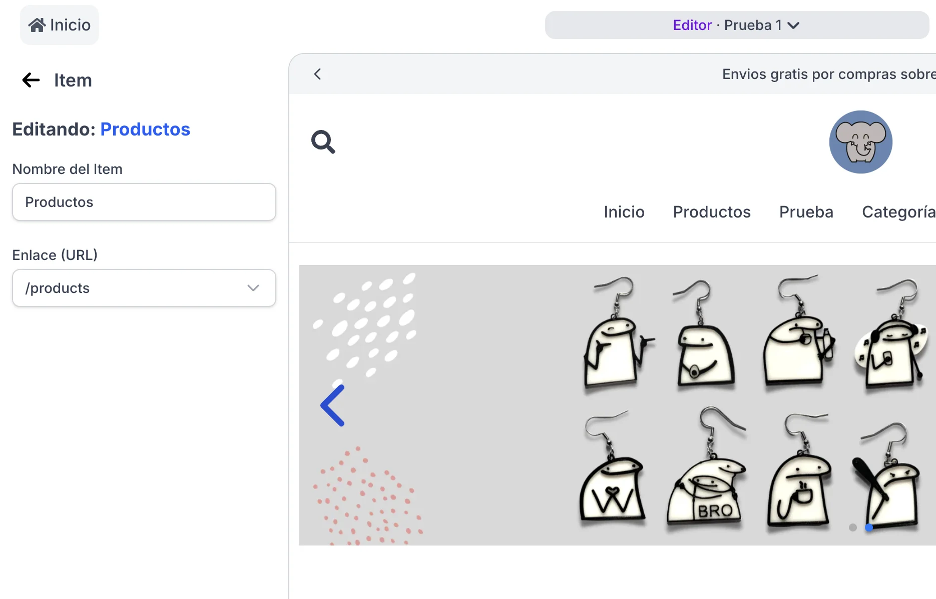 Nota: También puedes enlazar a Categorías, Productos o enlaces externos.