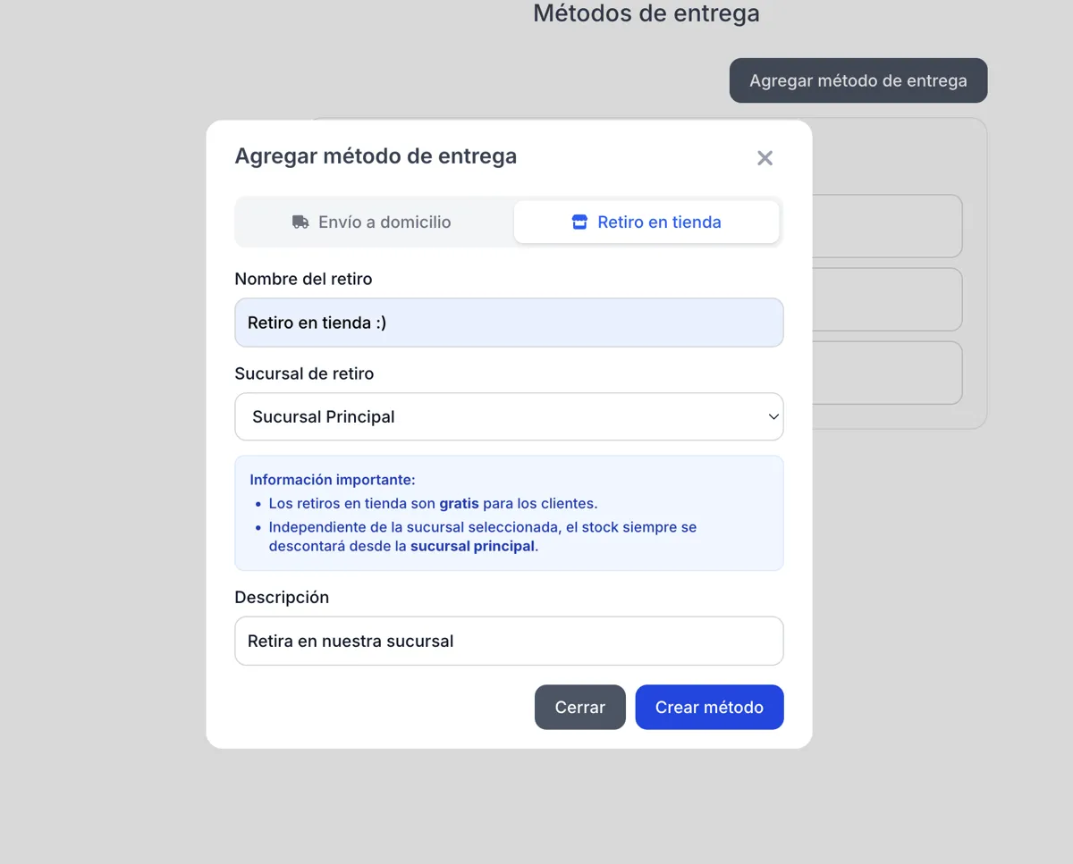 Nombre: Escribe "Retiro en Tienda" (o algo similar).