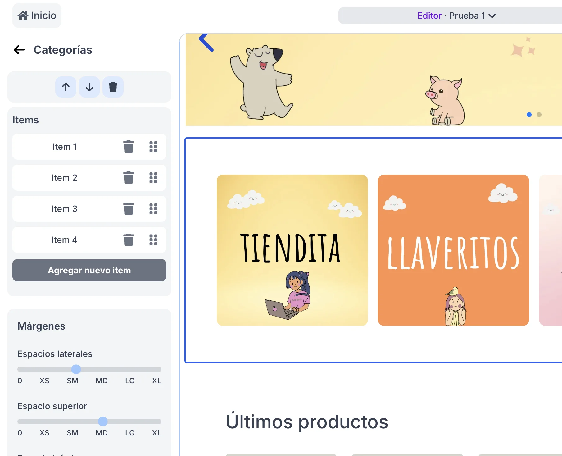 Agregar: Haz clic en el botón "Agregar nuevo item" al final de la lista para sumar un nuevo recuadro a la cuadrícula.