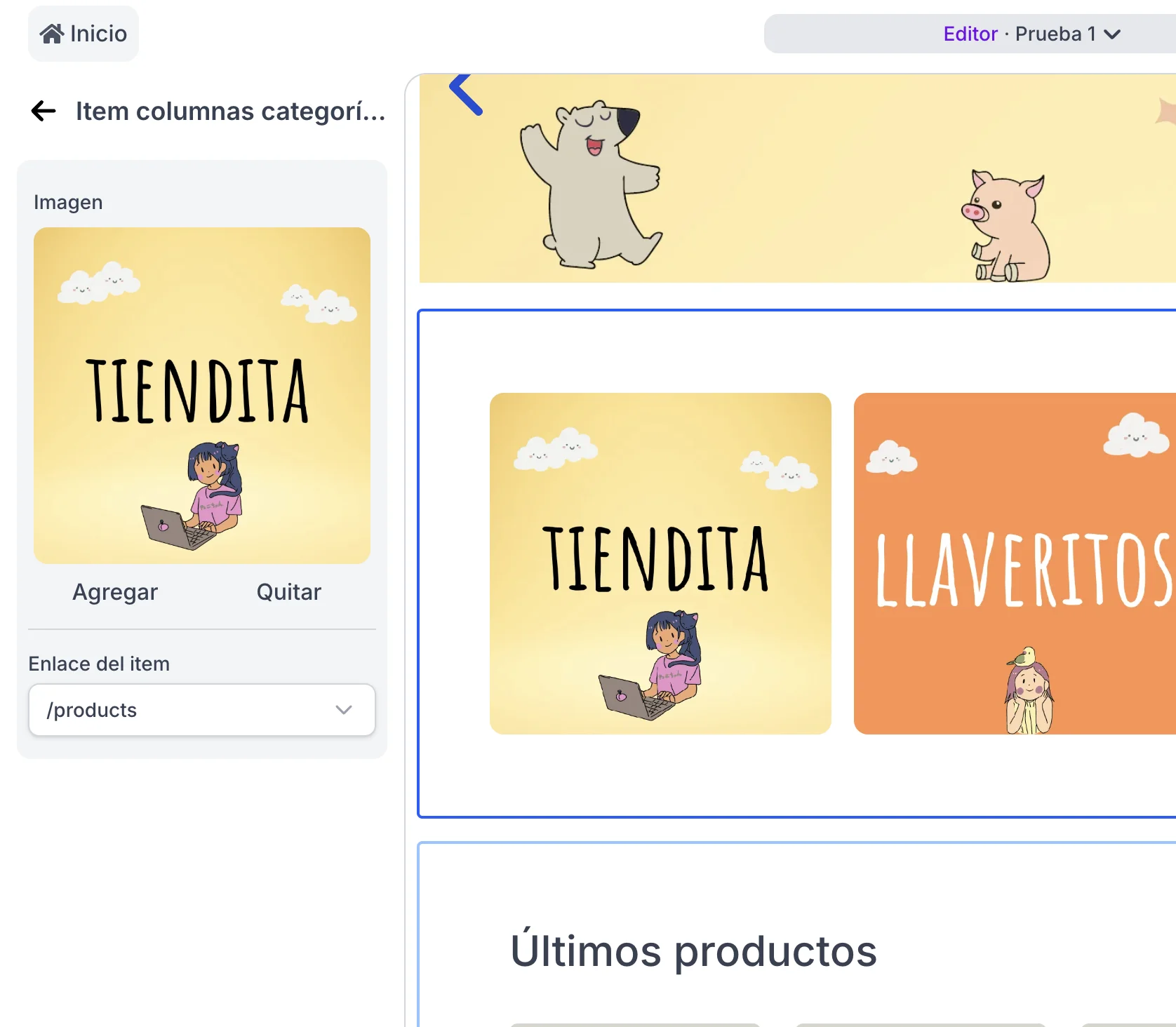 Una "Grilla de Categorías" es un conjunto de recuadros con imágenes que sirven como accesos directos. Es ideal para mostrar en la página de inicio opciones como: "Hombres", "Mujeres", "Niños" o "Ofertas".